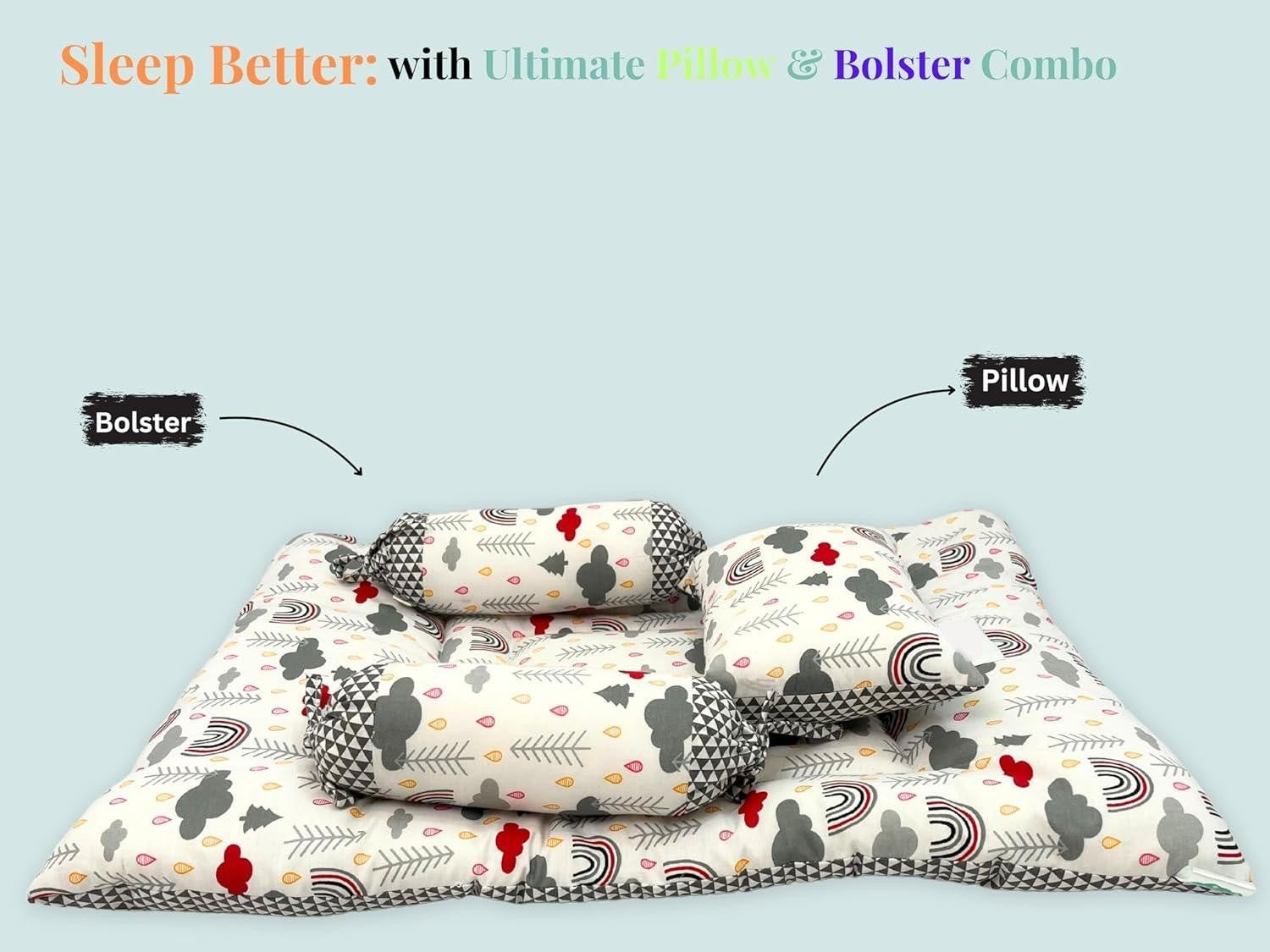 🛏️5-in-1 Complete Set – Mattress, Pillow, 2 Bolsters, Mosquito Net & Carry Nest