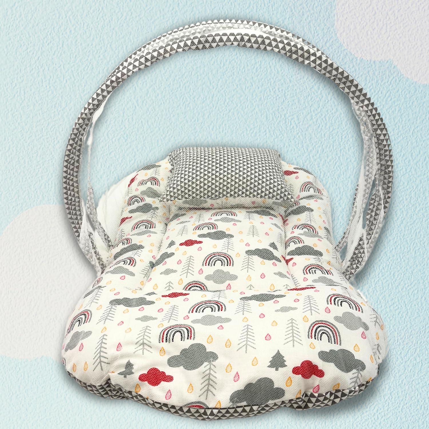 🌈 Giggli™ 5-in-1 Premium Baby Bedding Set with Mosquito Net, Bolster, Pillow & Carry Nest – Cloud & Rainbow Design