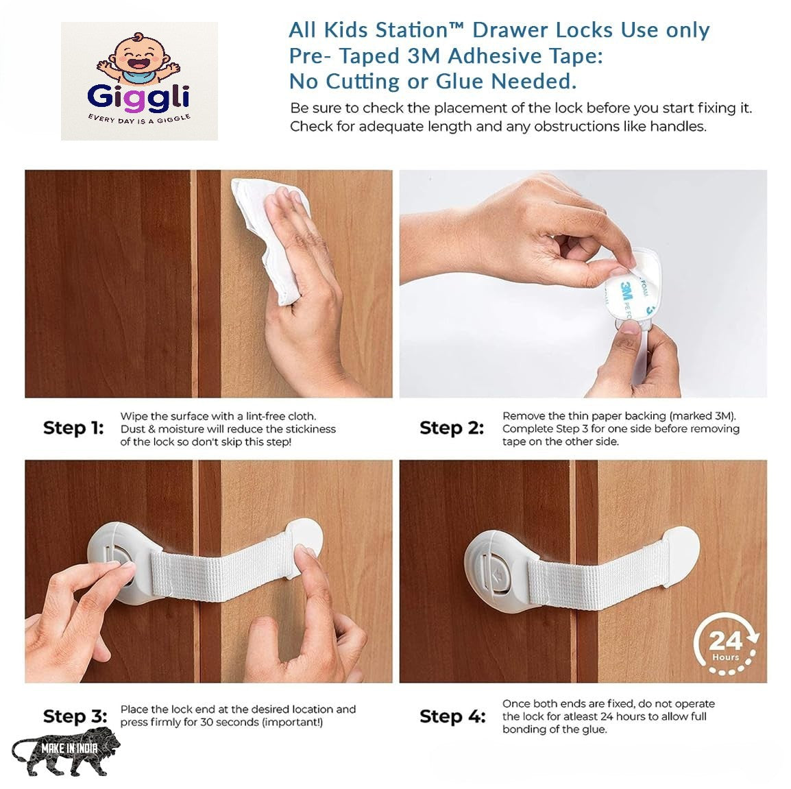 Giggli™ 3M Adhesive Baby Safety Lock – No Drill, No Mess, Just Total Protection