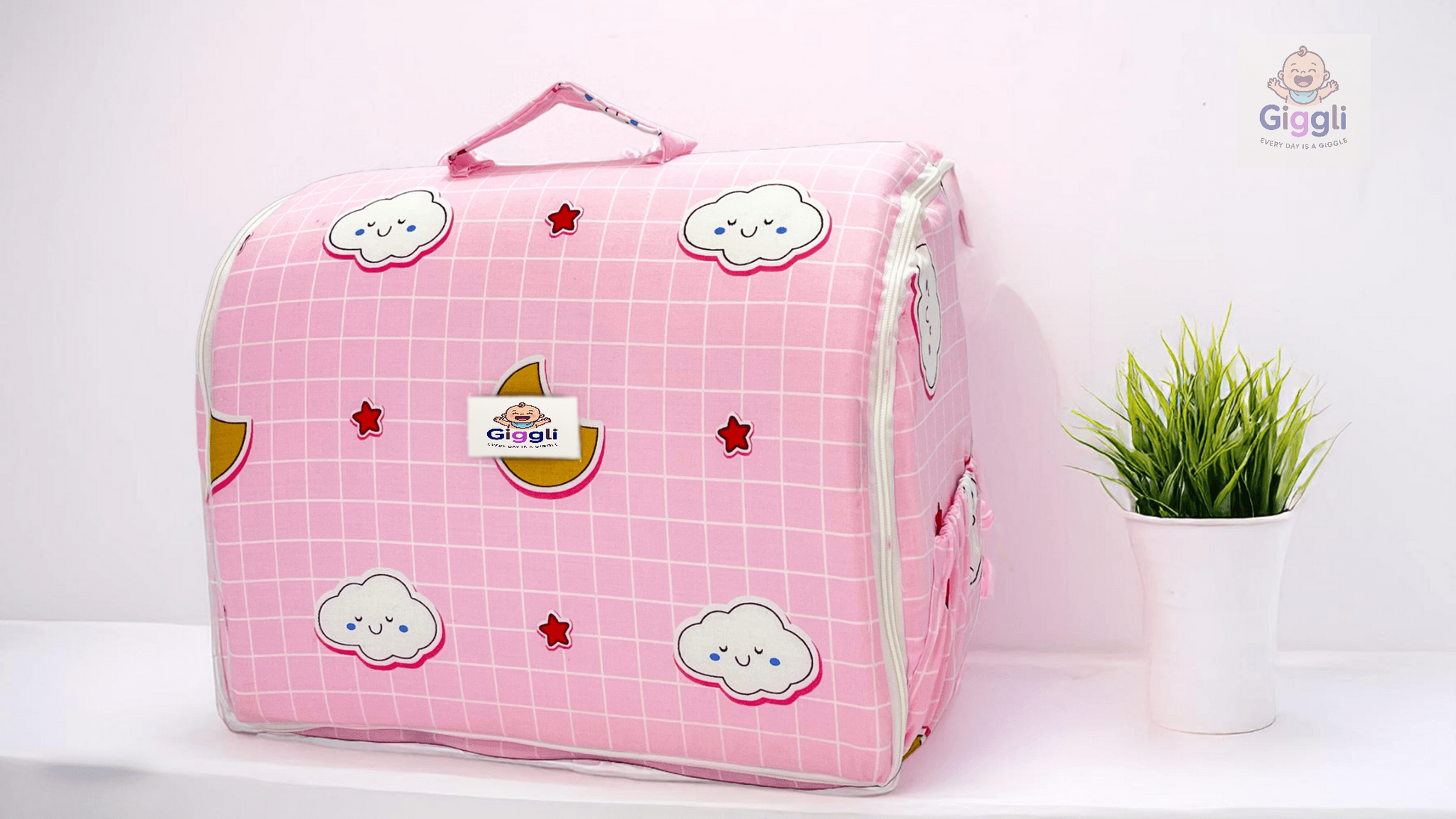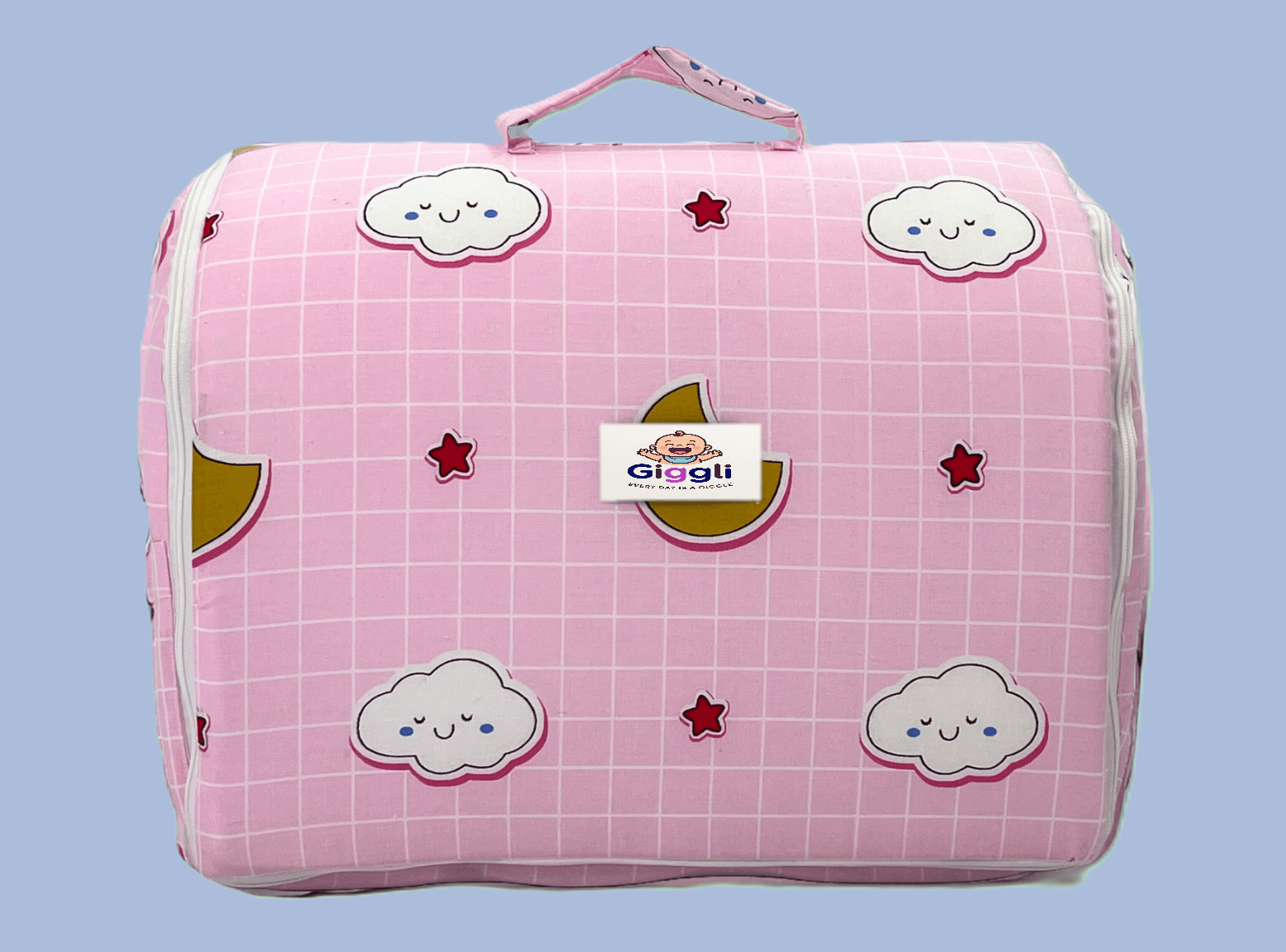 Give your little one the ultimate comfort with the Giggli™ 5-in-1 Baby Foldable Bed Set, specially crafted for happy, healthy sleep anytime, anywhere. Designed with soft, skin-friendly cotton and adorable cloud and moon prints, it creates a cozy environment that your baby will love.