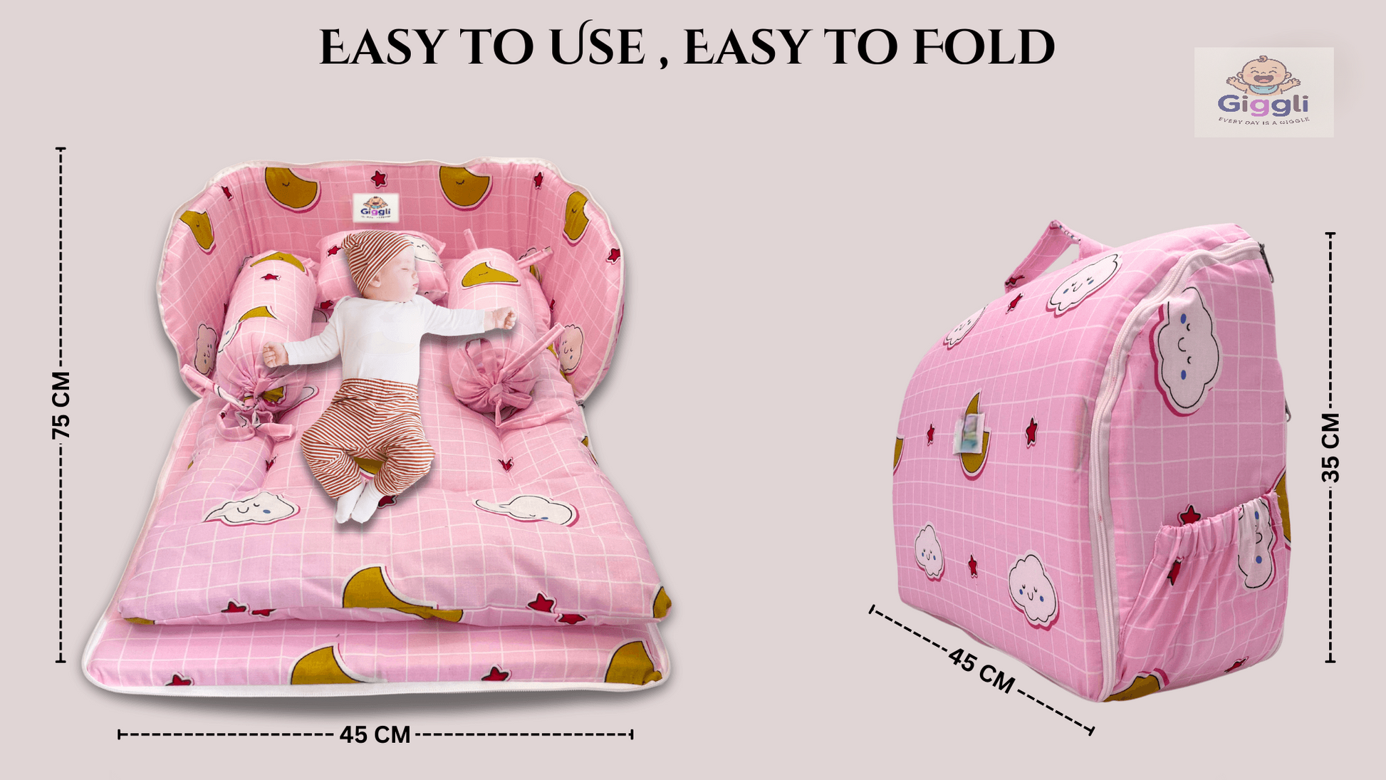 Giggli™ 5-in-1 Baby Foldable Bed Set – Lightweight, Portable & Ultra-Comfortable Baby Sleeping Nest