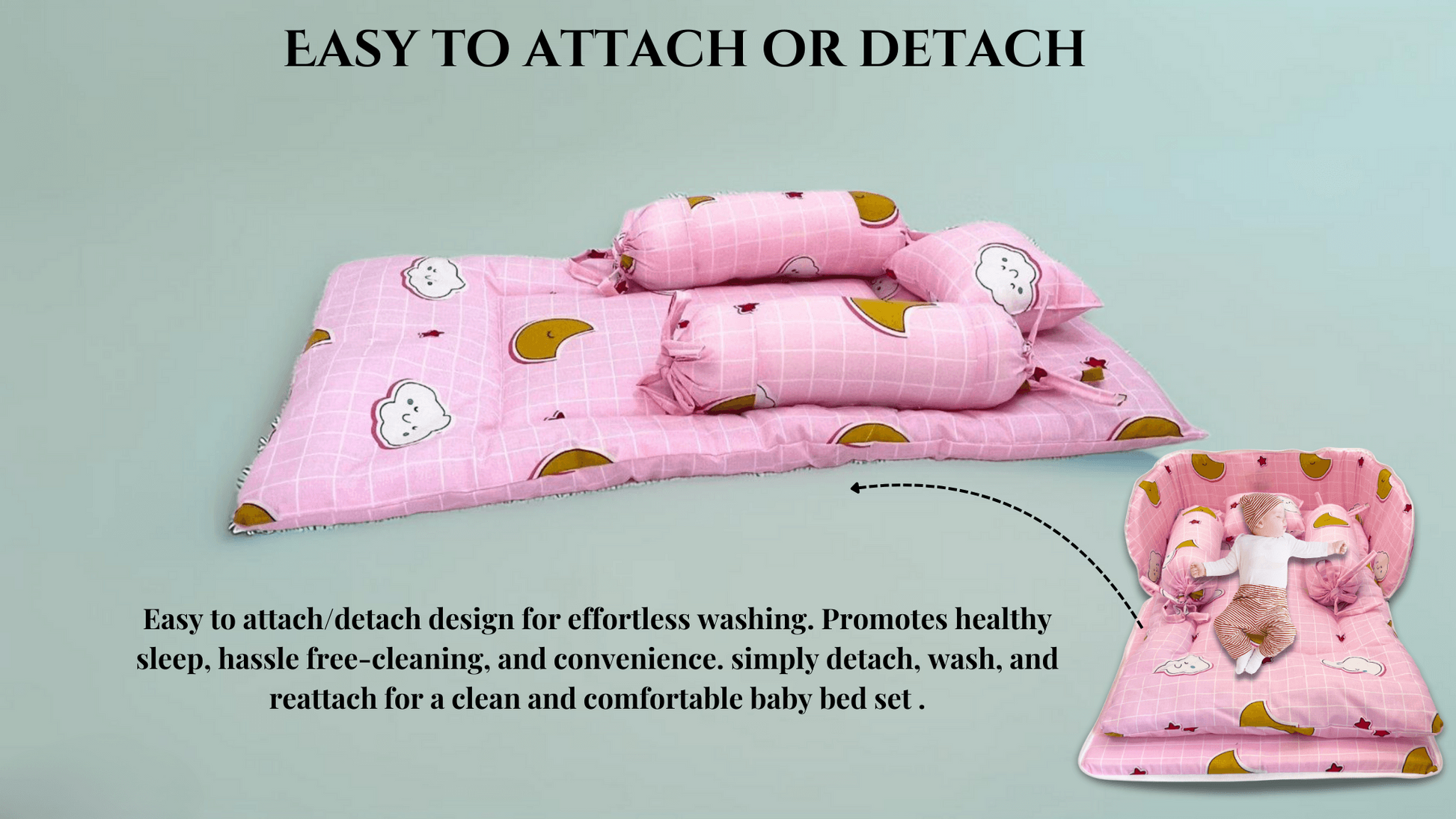 ✅ Hygienic & Easy to Wash: Features a smart easy-attach/detach design for quick removal and hassle-free washing, ensuring your baby’s bed stays fresh and clean.