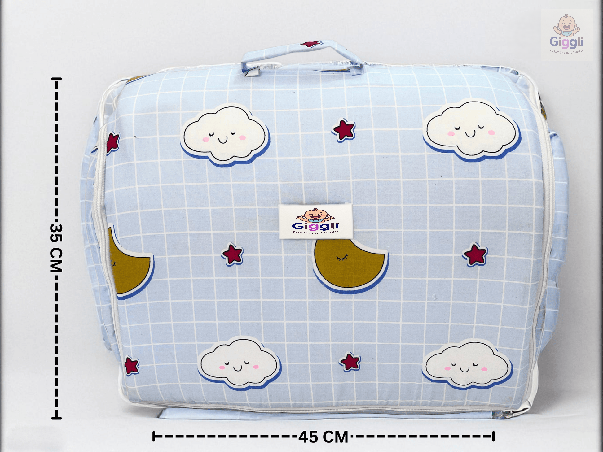 Bring comfort, safety, and style together with the Giggli™ Premium Beige 5-in-1 Foldable Baby Bed Set — designed for modern parents who never compromise on their baby's comfort. With adorable cloud and moon designs, this multi-purpose bed offers a peaceful cocoon for your little one, whether at home or on the go.