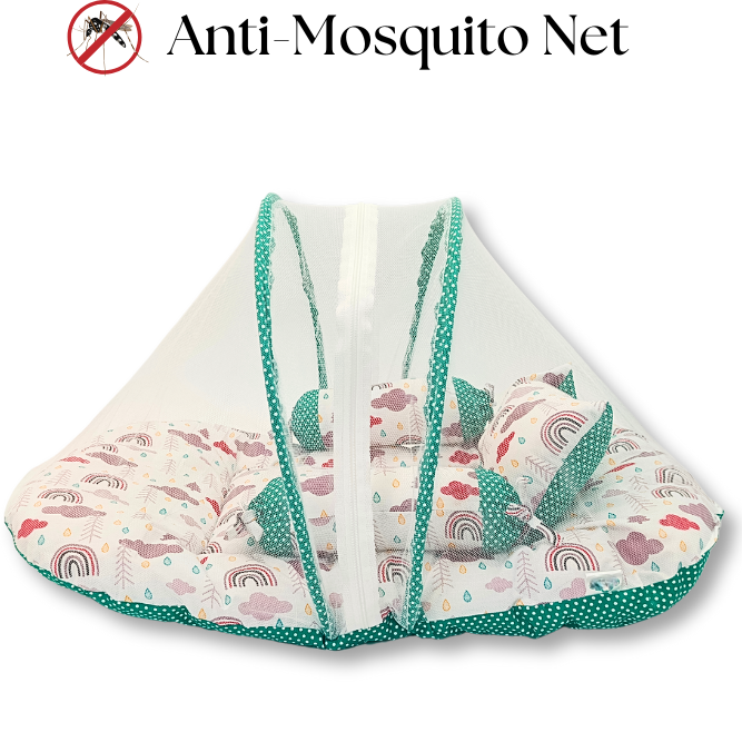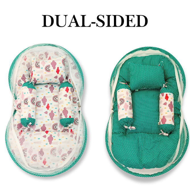 Giggli™ Reversible Baby Bedding Set with Mosquito Net – 6-in-1 Newborn Sleeping Kit (Cloud & Dot Print)
